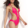 Rückenfreier Monokini Badeanzug in pink. Ohne Brust-Einlagen.